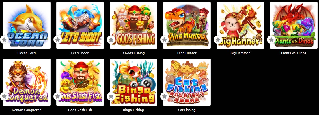 Ocean Lord, Let's Shoot, 3 Gods Fishing, Dino Hunter, Big Hammer, Plants Vs Dinos, Demon Conquered, Gods Slash Fish, Bingo Fishing, Cat Fishing.